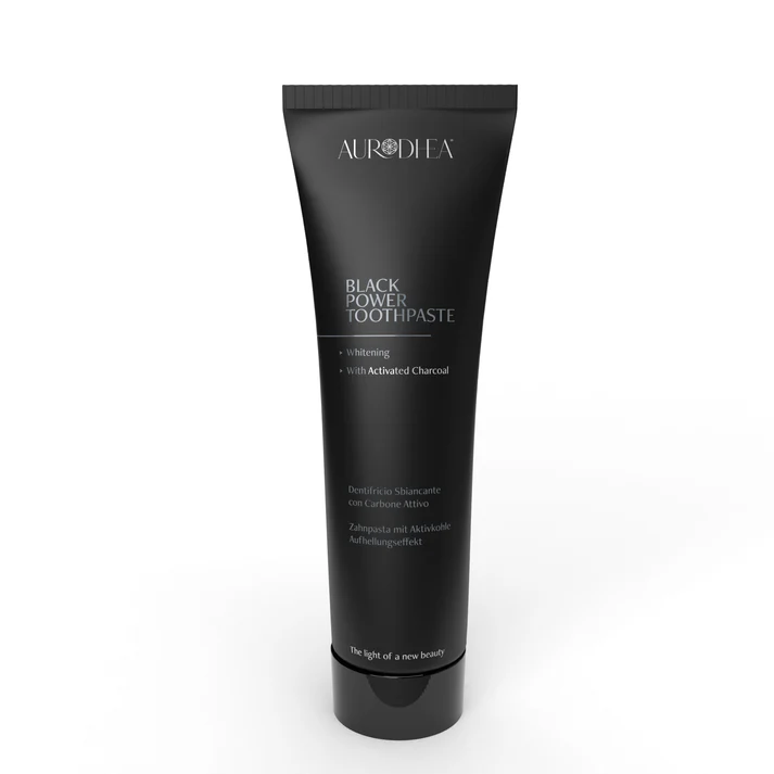 Le dentifrice Black contient du charbon actif, qui élimine les bactéries, éclaircit les taches dentaires et a une action blanchissante grâce à sa formule à base de Charbon actif. Il contient du Pyrophosphate de sodium, une substance capable d’éliminer le Magnésium et le Calcium de la salive, empêchant ainsi leur dépôt sur les dents et la formation consécutive de tartre. Sa formule naturelle, d’origine végétale, sans graisses animales ni alcool, rétablit le pH physiologique et reminéralise les dents. Actif sans être agressif sur les dents et les gencives, il est non abrasif. Il contient de l’huile essentielle de Menthe poivrée, qui assure un goût agréable et une sensation de fraîcheur durable. L’effet blanchissant est perceptible dès les premiers lavages.